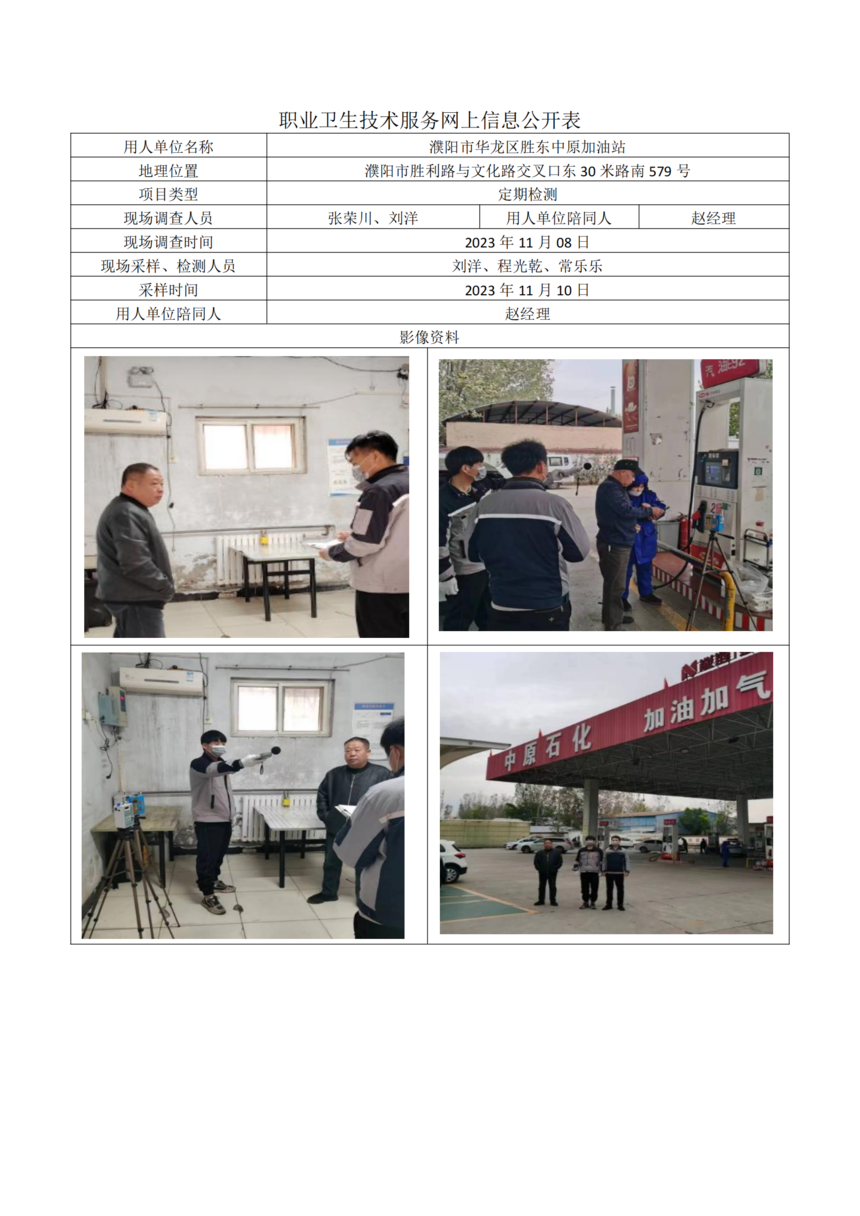濮阳市华龙区胜东中原加油站工作场所职业病危害因素检测