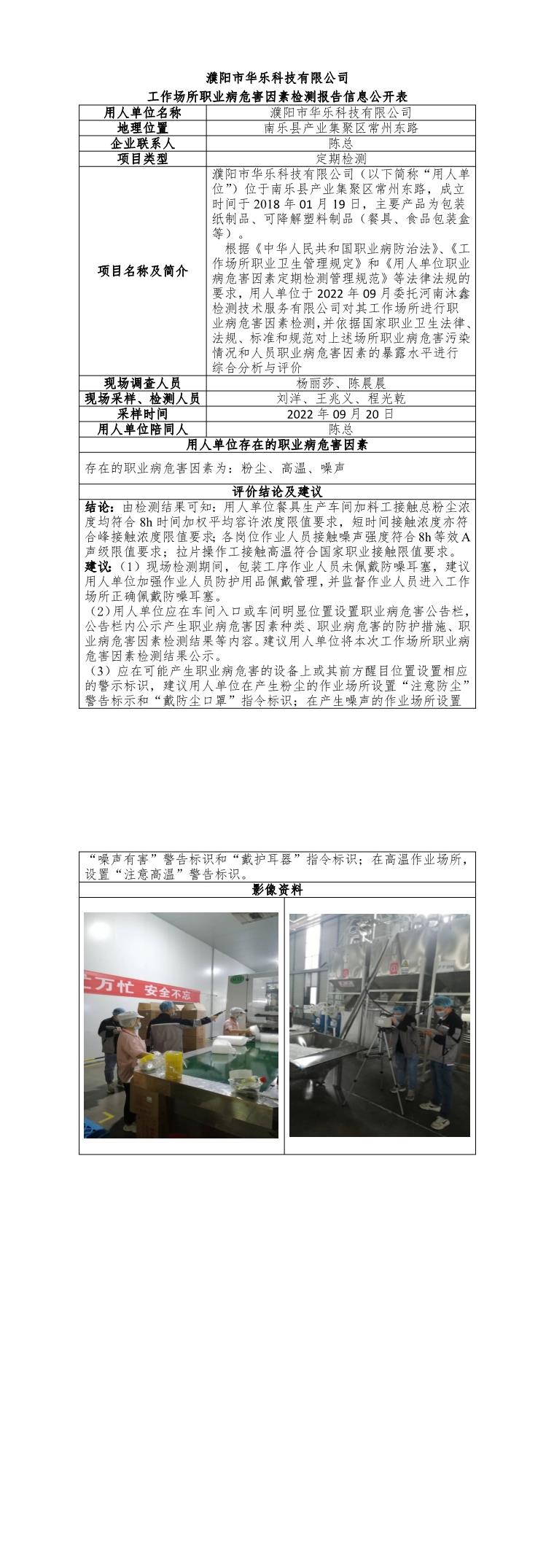 濮阳市华乐科技有限公司工作场所职业病危害因素检测