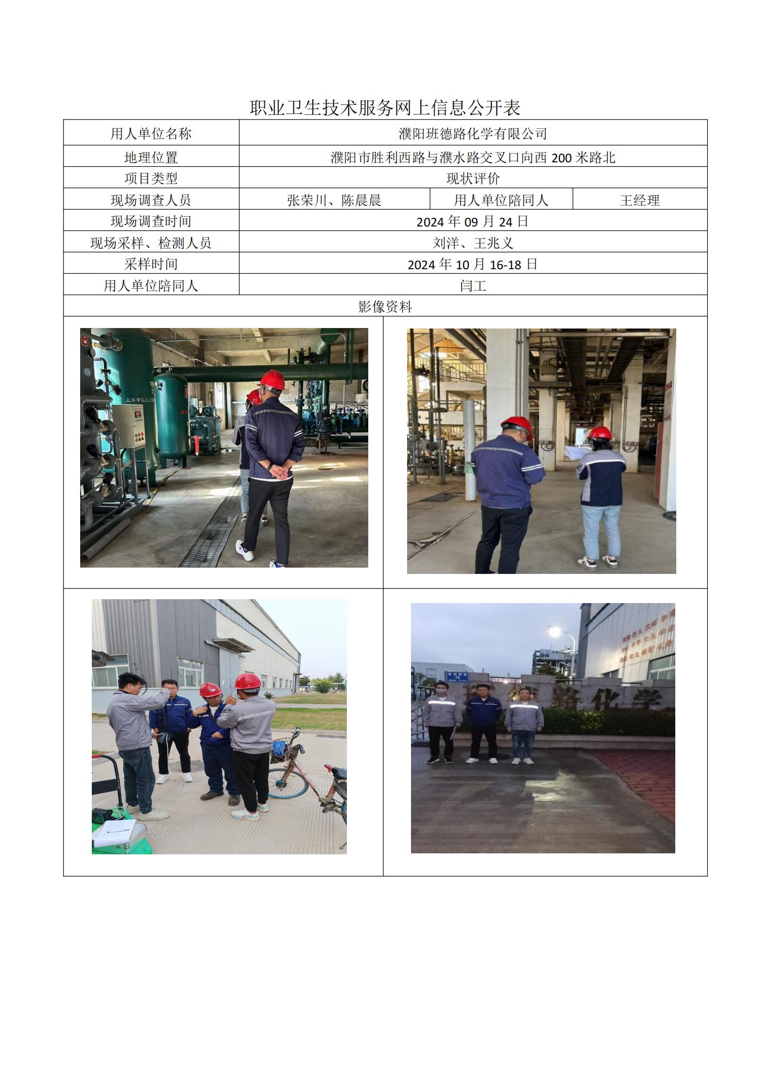 濮阳班德路化学有限公司职业病危害现状评价