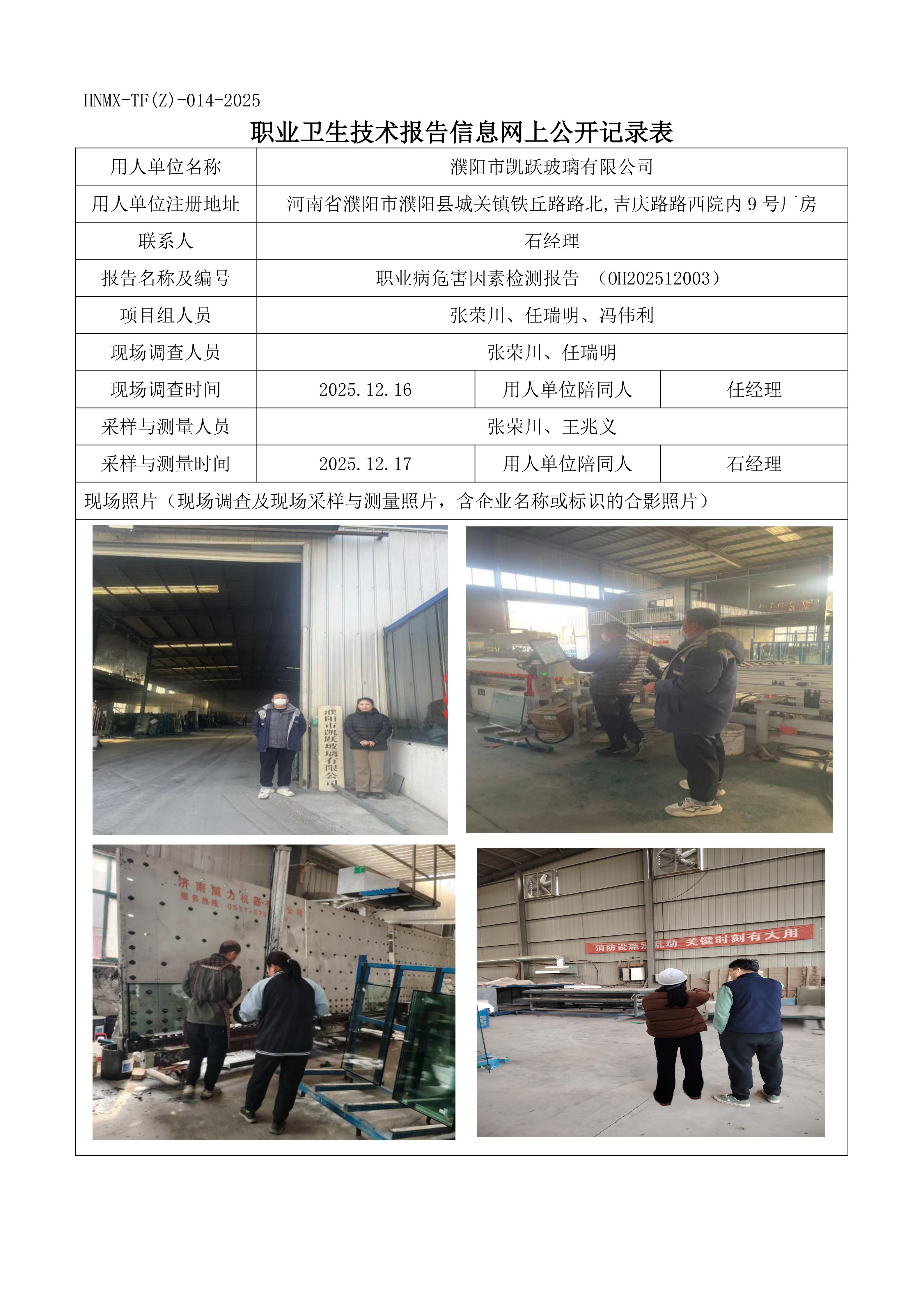 濮阳市凯跃玻璃有限公司职业病危害因素检测