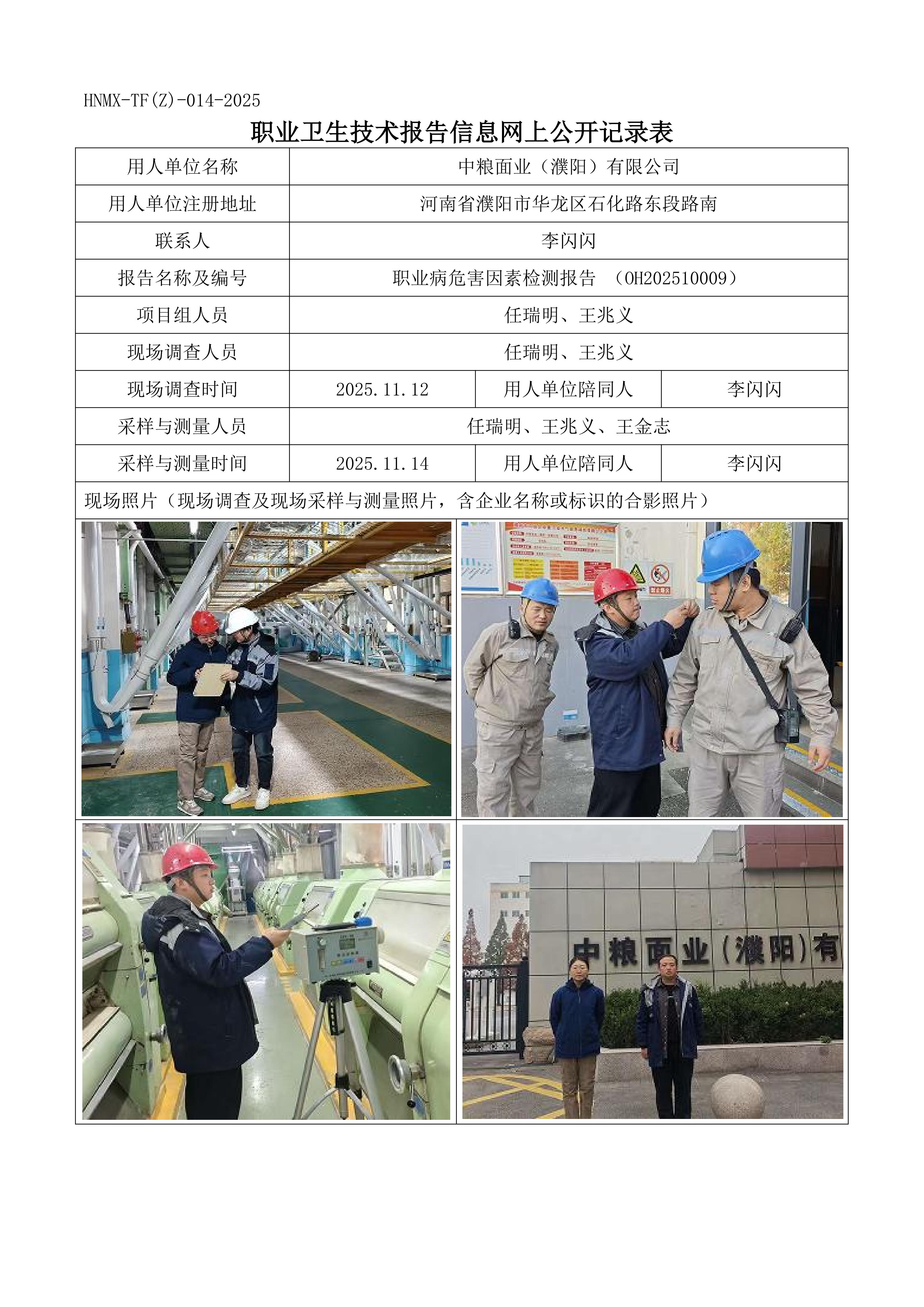 中粮面业(濮阳)有限公司 职业病危害因素检测