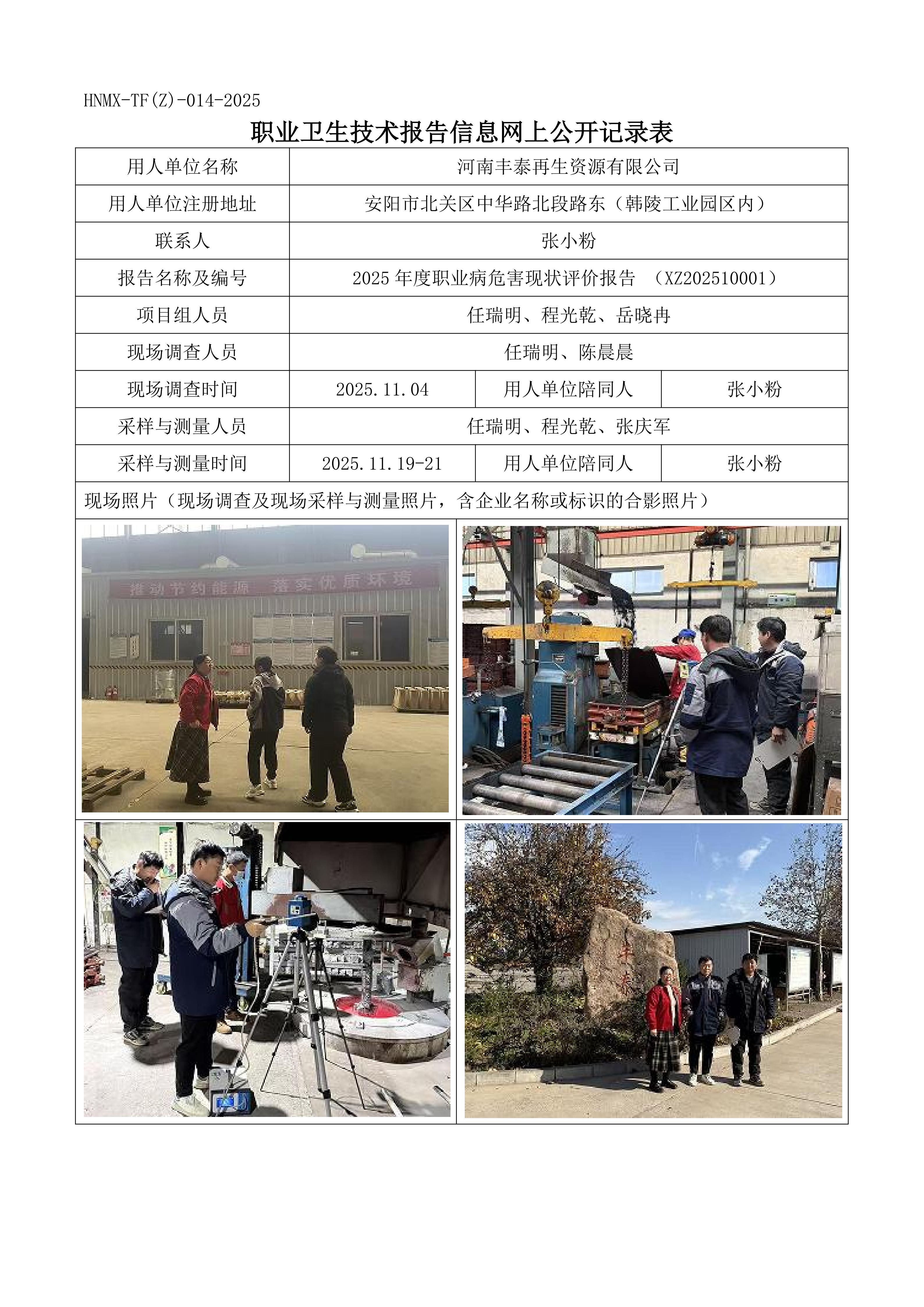 河南丰泰再生资源有限公司 2025年度职业病危害现状评价