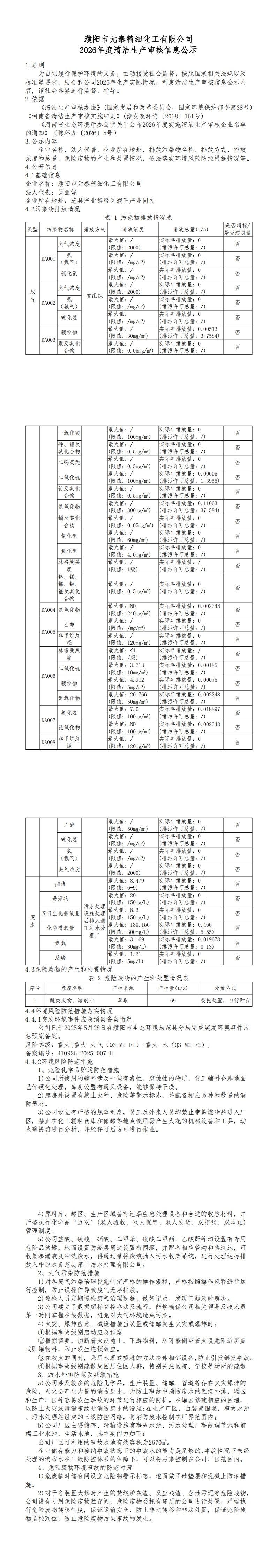 濮阳市元泰精细化工有限公司 2026年度清洁生产审核信息公示