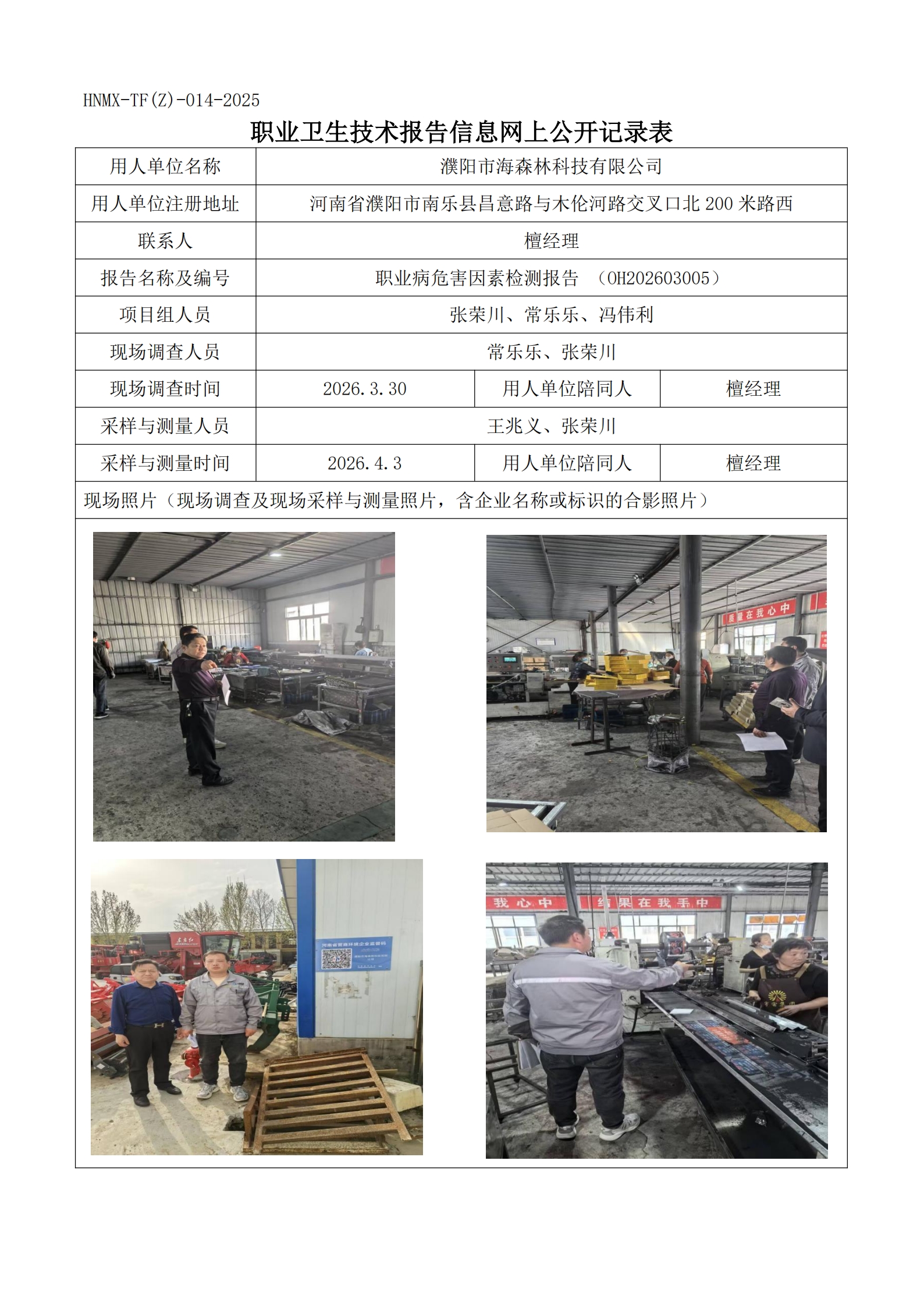 濮阳市海森林科技有限公司工作场所职业病危害因素检测
