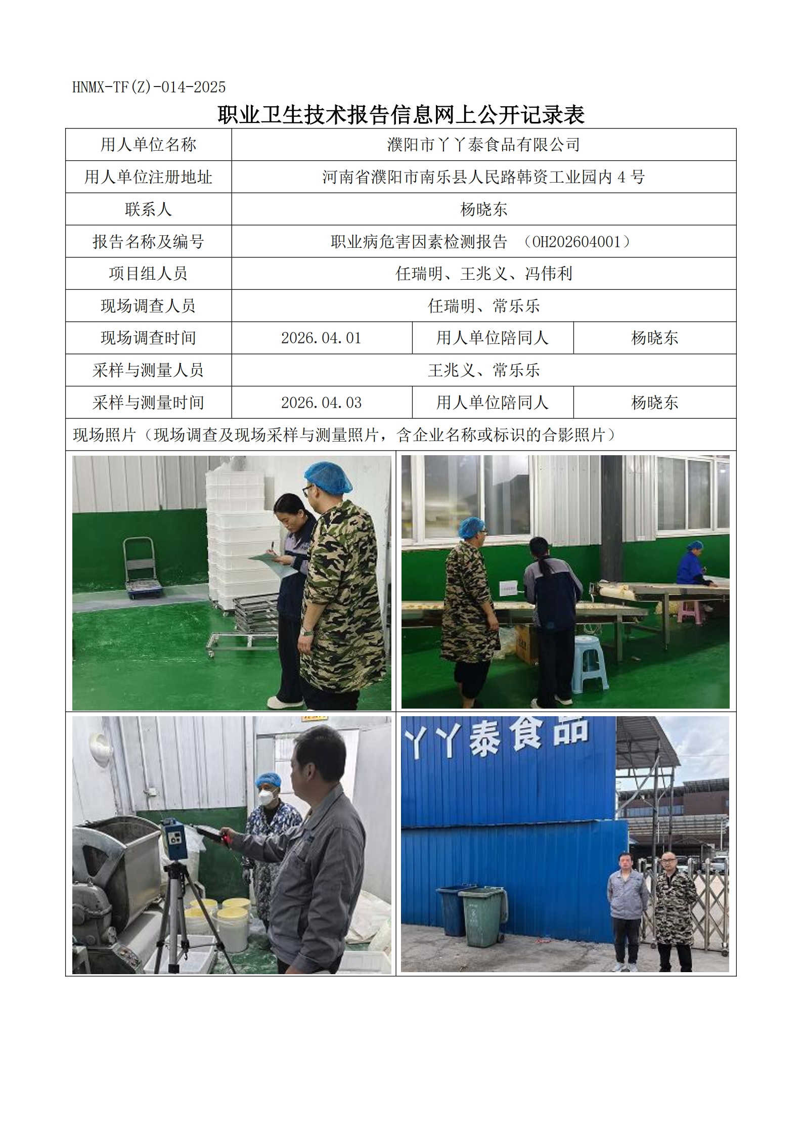 濮阳市丫丫泰食品有限公司 职业病危害因素检测