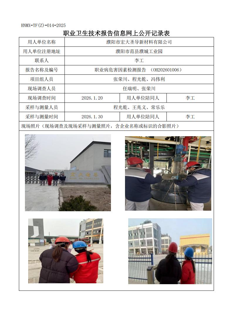 濮阳市宏大圣导新材料有限公司职业病危害因素检测